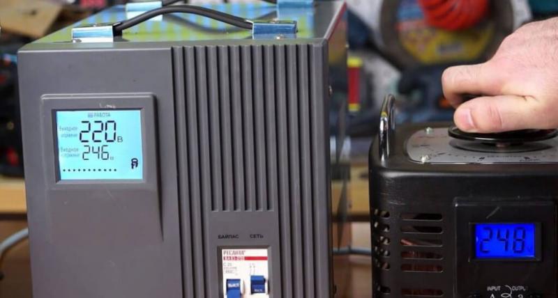 Электронно-релейный стабилизатор при включении постоянно отслеживает напряжение питания и мгновенно реагирует на изменения. Пользователи отмечают, что сбоев и поломок из-за отказа электроники в результате колебаний напряжения в сети, не наблюдалось.